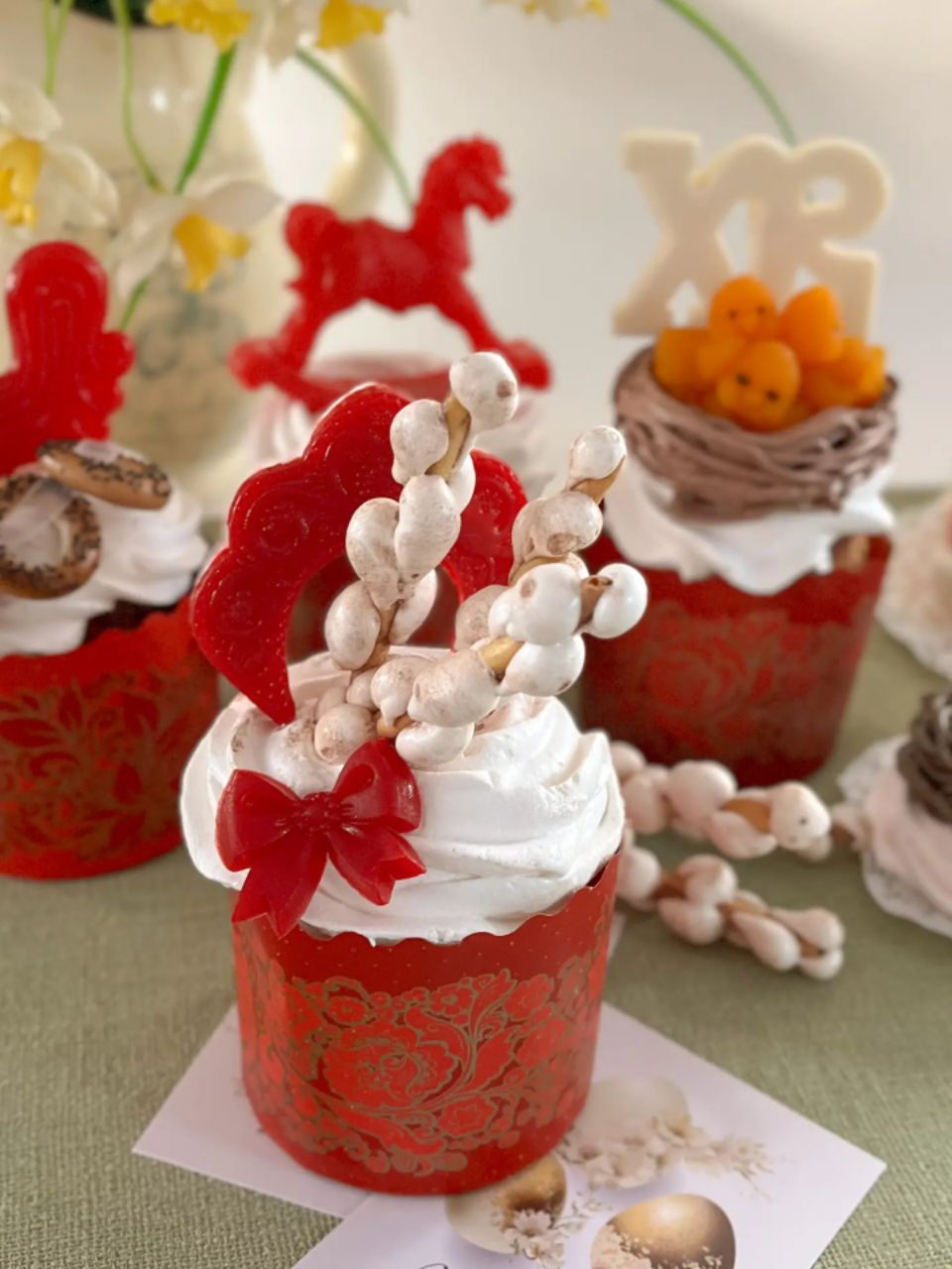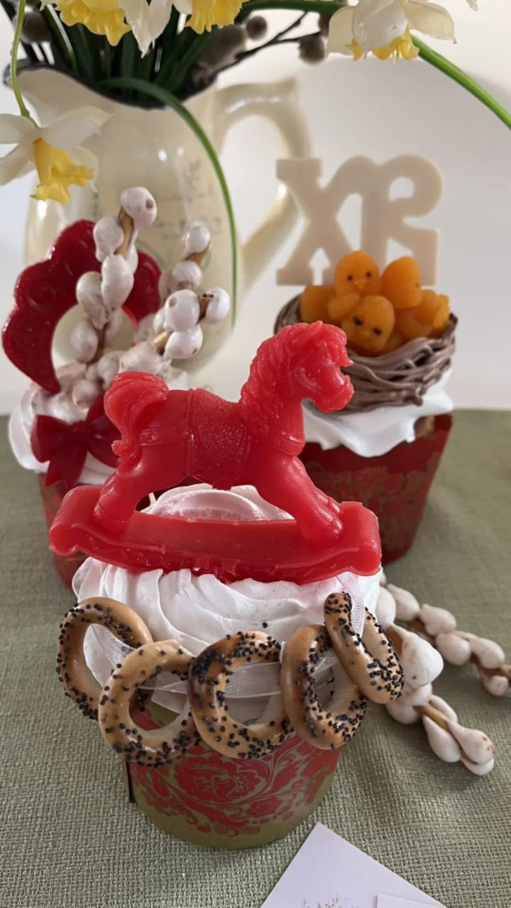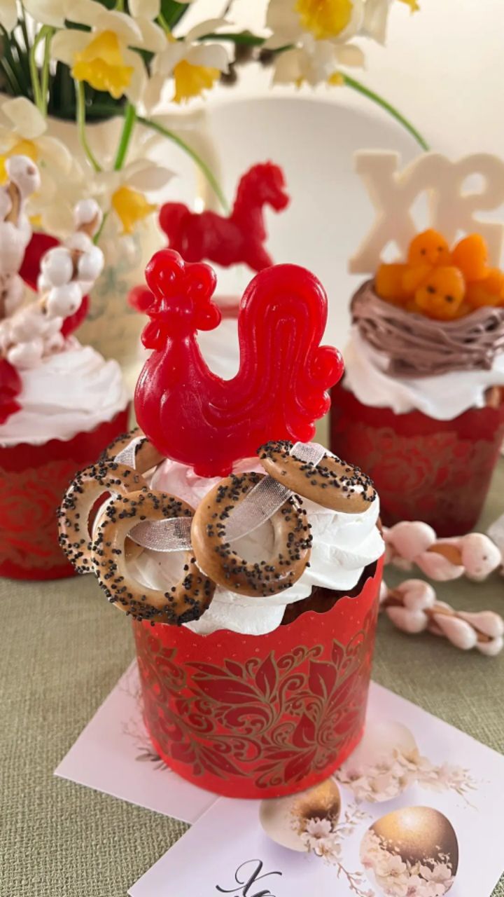 Украшен зефиром, мармеладом, баранками. Диаметр 7см